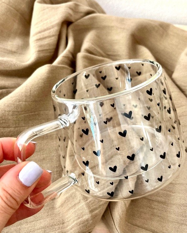 Taza de 400cc de doble vidrio. No apta para microondas ni lavavajillas
