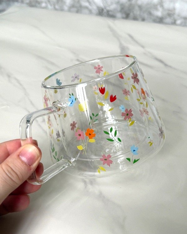 Taza de 400cc de doble vidrio. No apta para microondas ni lavavajillas