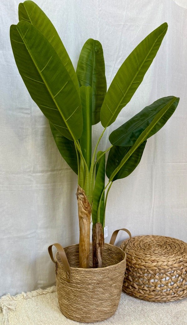 La planta viene con maceta negra pero no incluye el canasto
