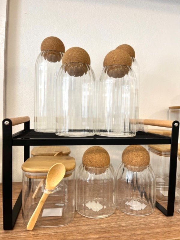 Repisa organizadora de hierro con manijas de bambú. Disponibles en color blanco y negro